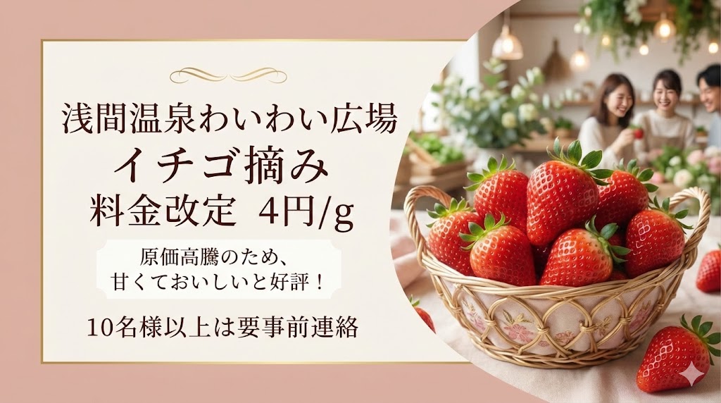 年中開園しております!浅間温泉で温泉で温まった後に美味しいイチゴ体験しませんか?おまちしております(*’▽’)