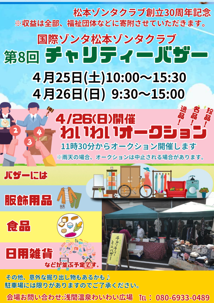 松本市浅間温泉でチャリティバザー開催。フィリピンの農園支援